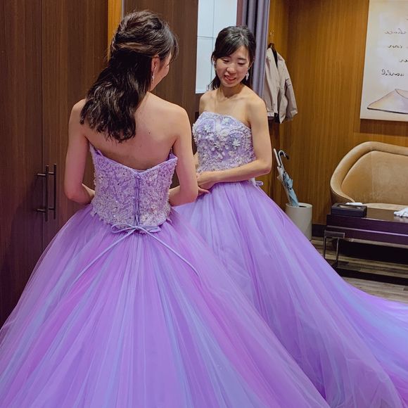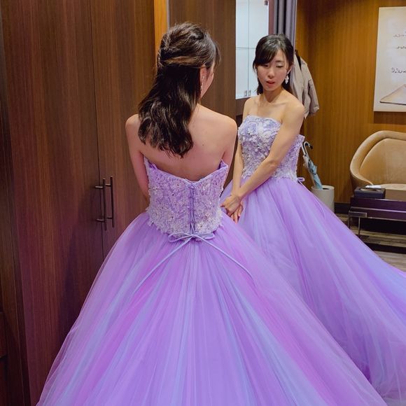 マタニティウェディングなので腰もとの切り返しがあるこちらのドレスはやめました🥺