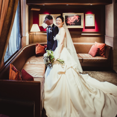 ヘアについては髪が長くはなかったので、お任せしました。1着目と2着目で印象が変わるようにはお願いしました。 メイクはリハ—サルの際に、好きな色味を伝え、あまり濃くしないようにお願いしました。