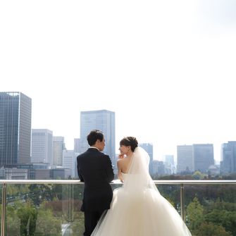 結婚式のテーマは「先取りホワイトクリスマス」です。ホワイトクリスマスの上品さと美しさを取り入れ、ホワイト×ブラック×シルバーの洗練された空間にしました。