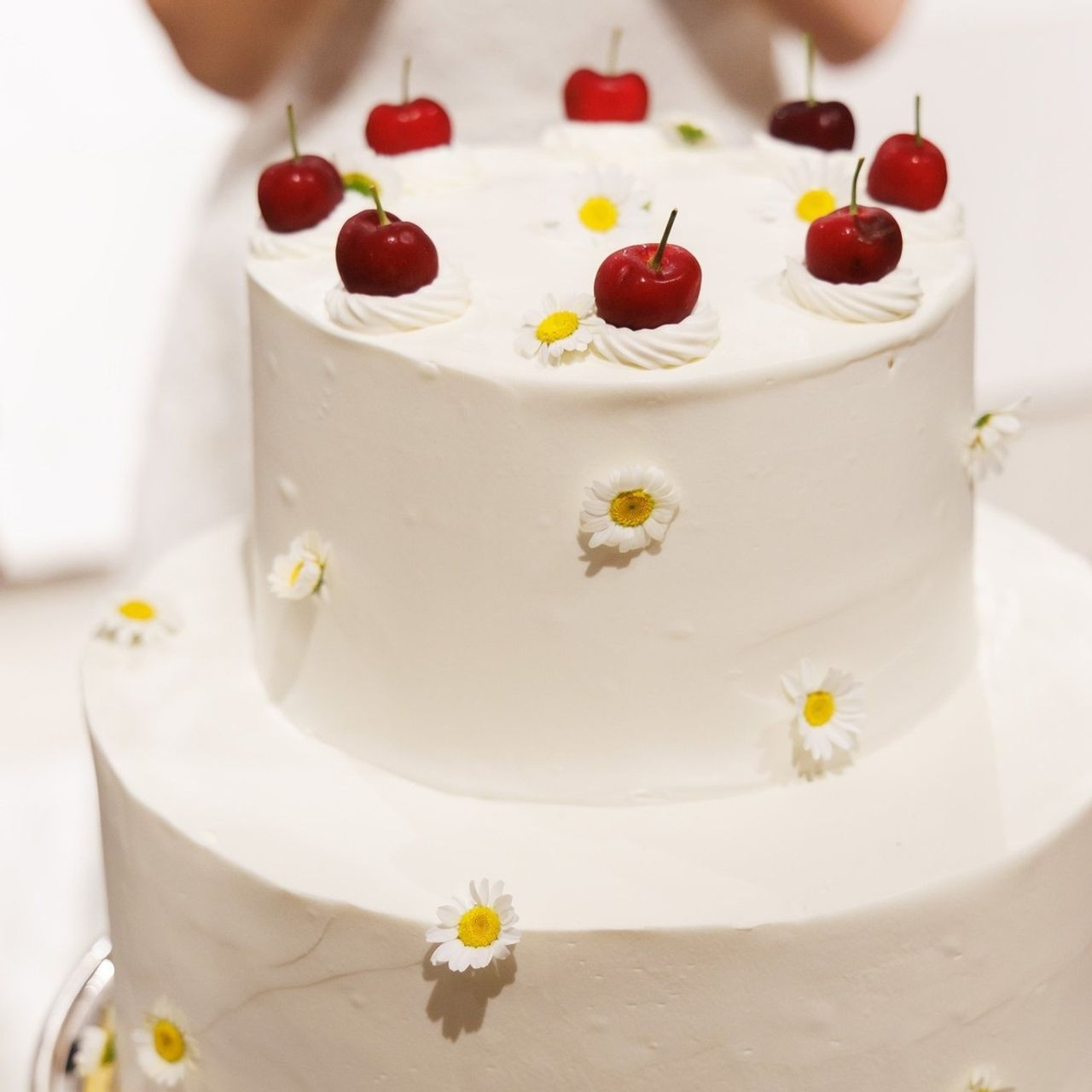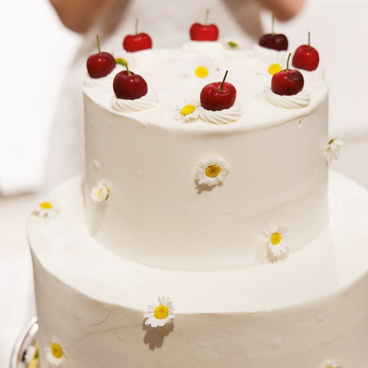 2段のチェリー×お花の少しビンテージ感を意識したケーキです。