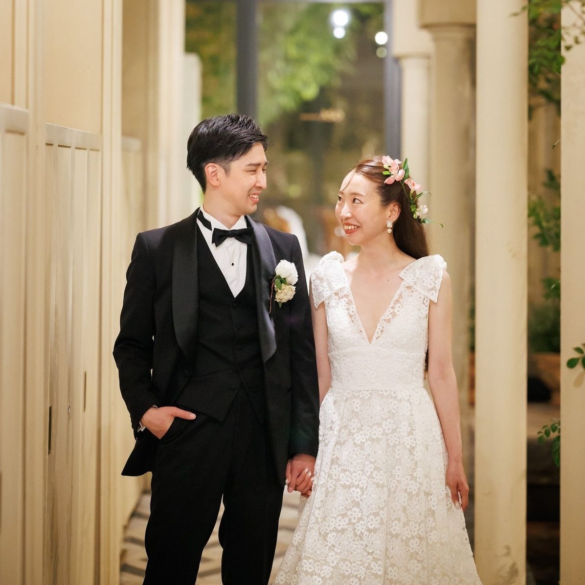 わたしたちの当日はちょうど雨が上がったので天井や会場奥の扉も開けることができて感動しましたが、きっと雨降りでも水滴が綺麗に見えて特別な印象になるかと思います。