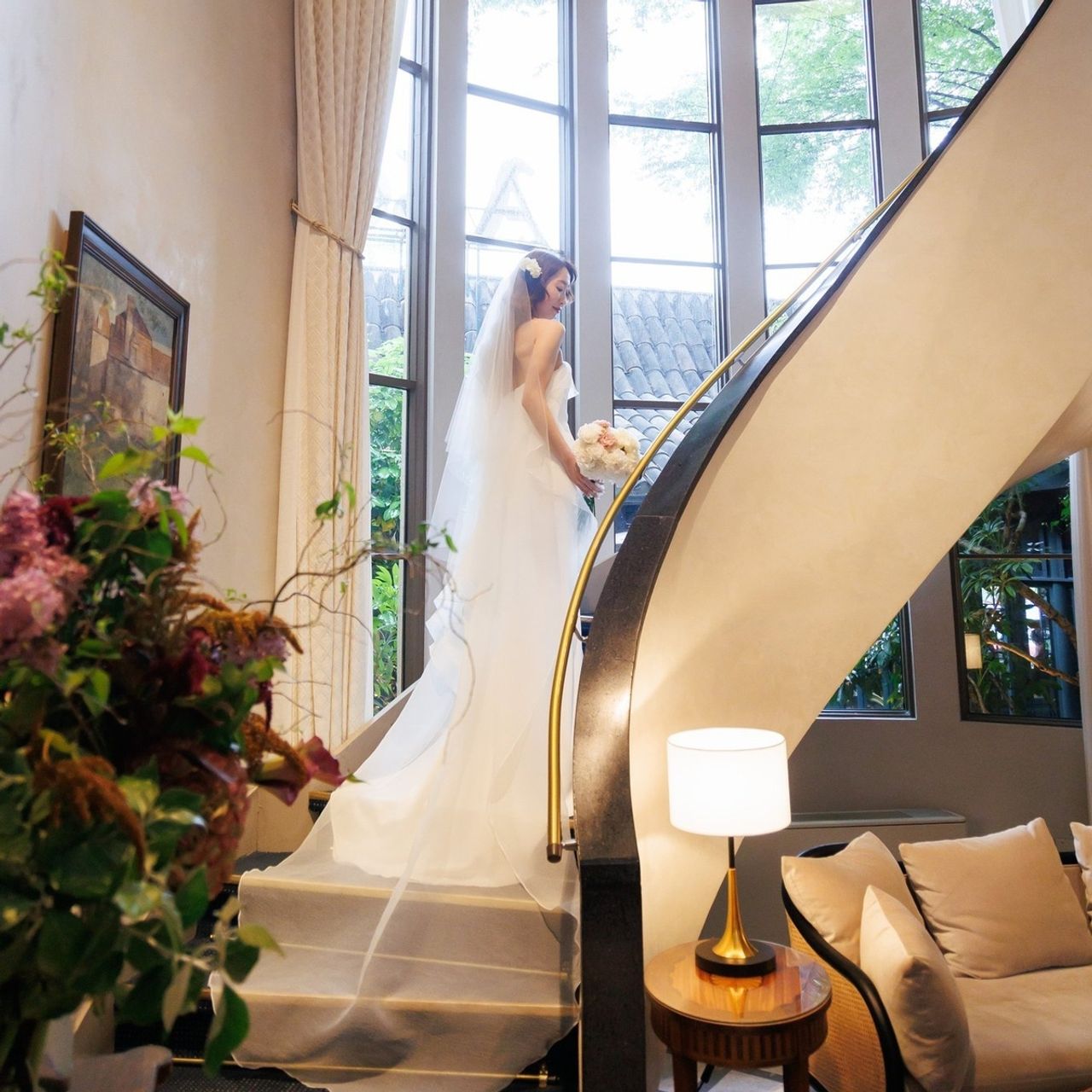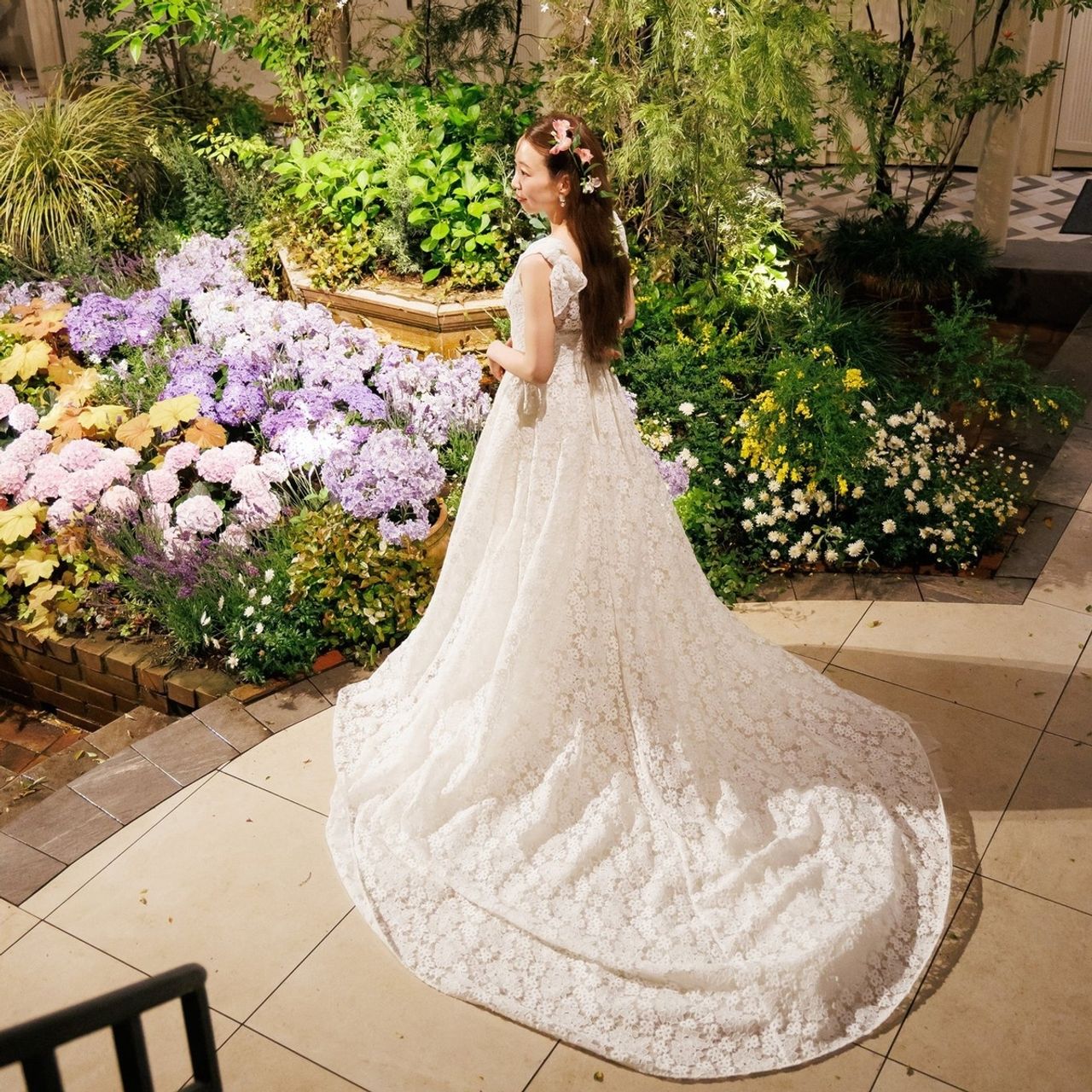 ヘアスタイルは執念の如く伸ばし続けたスーパーロングをとことん生かして、ダウンヘアメインにお願いしました。