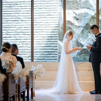 自然光に包まれる洗練されたチャペルに一目惚れしました💘また、披露宴会場はテラスに出ることができ、ホテル婚ながらも開放的なところも決め手の一つです!