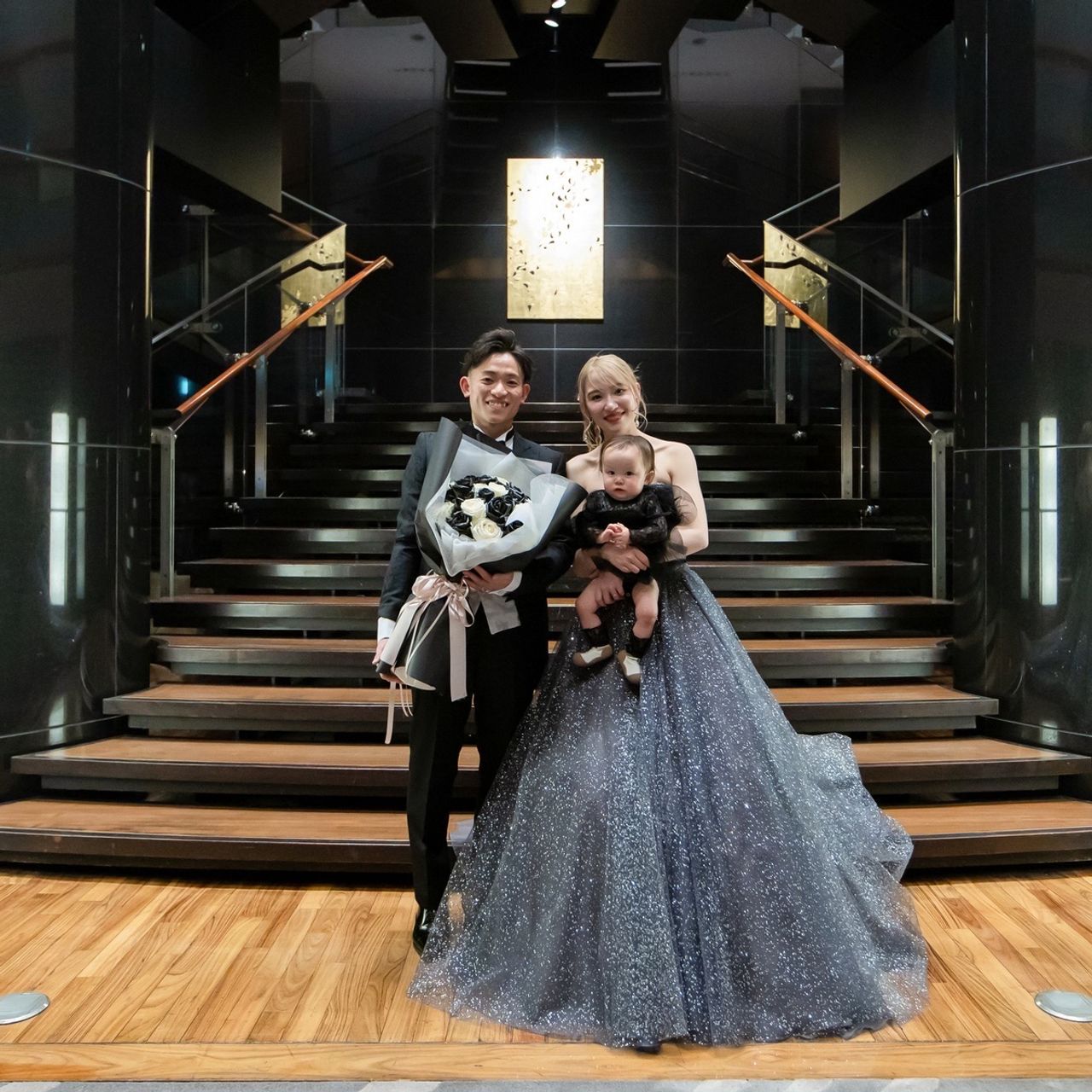 披露宴会場の大きな階段に一目惚れして、決めました。夫婦の好きな色で飾った大階段から入場できて、すごく楽しかったです!