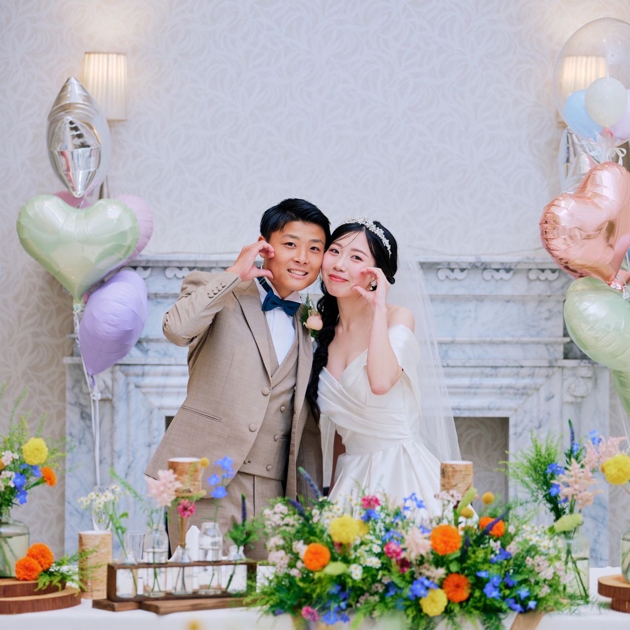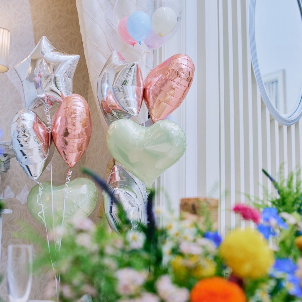 装花ももちろんですが、購入したバルーンを持ち込んで飾ったことで、可愛く個性ある空間に仕上がったと思います。