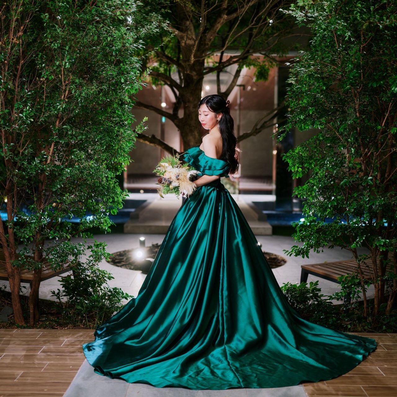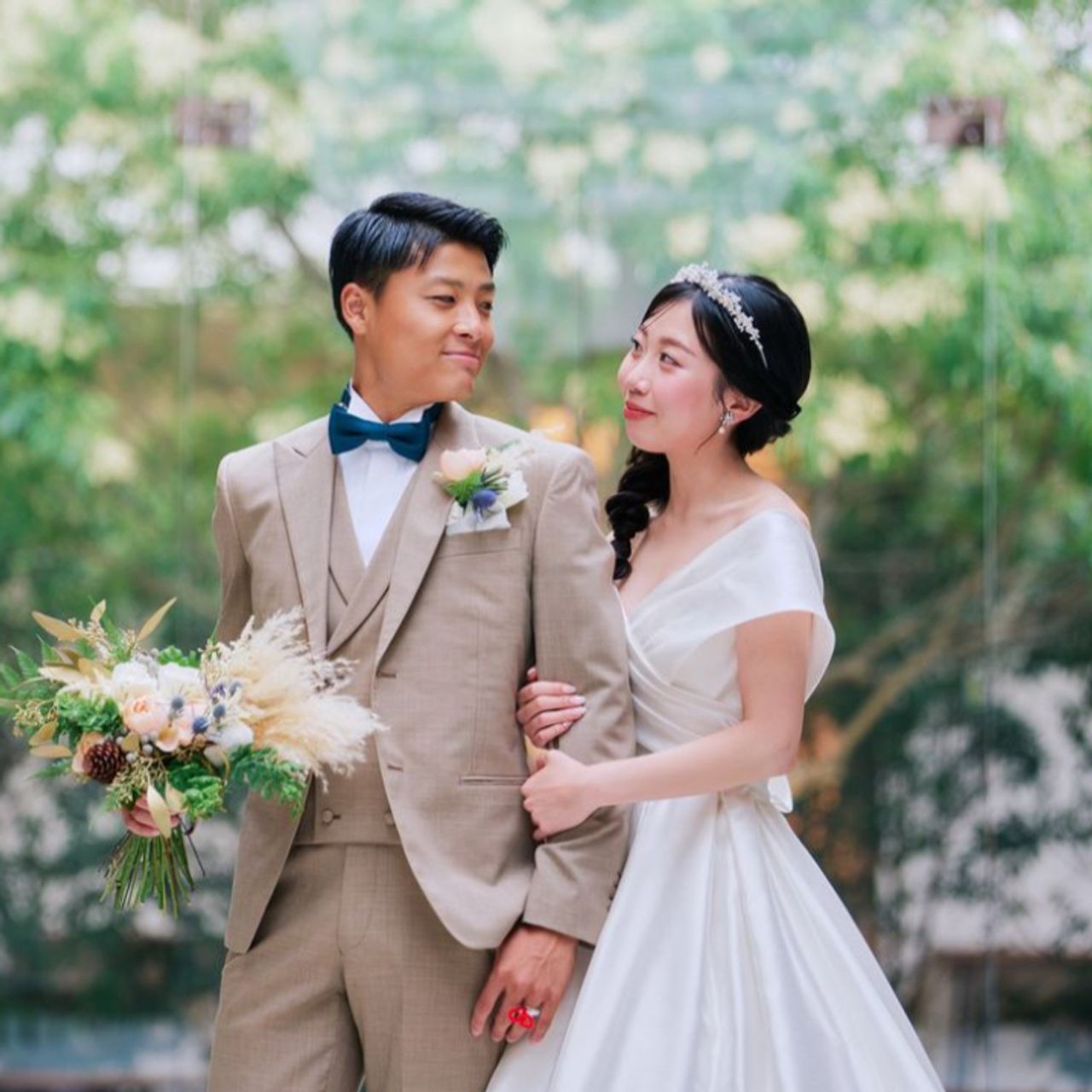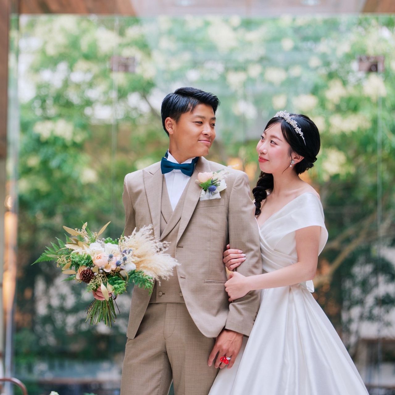 アクアガーデンテラスは、アクセス面から候補に選んだのですが、その中でも私の理想だった【緑があって綺麗なところ】であったことが、式場の決め手になりました。