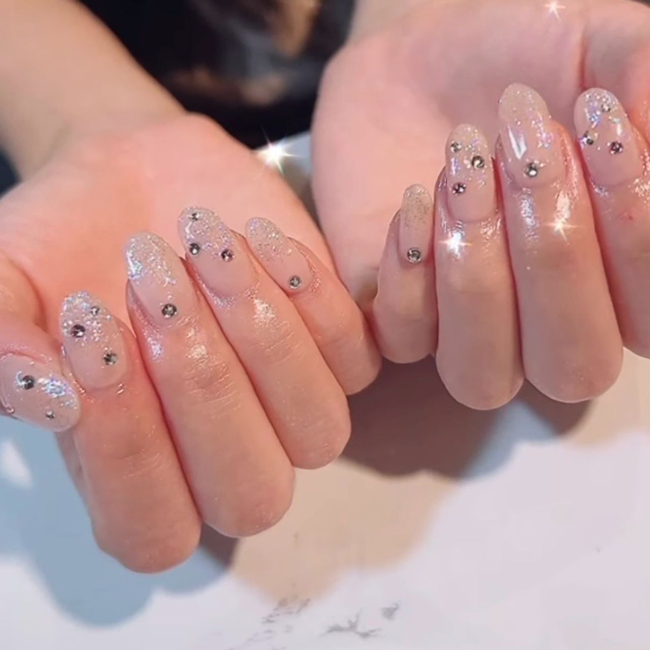 白ベースにカラフルなストーンを少しずつ乗せてもらいました。