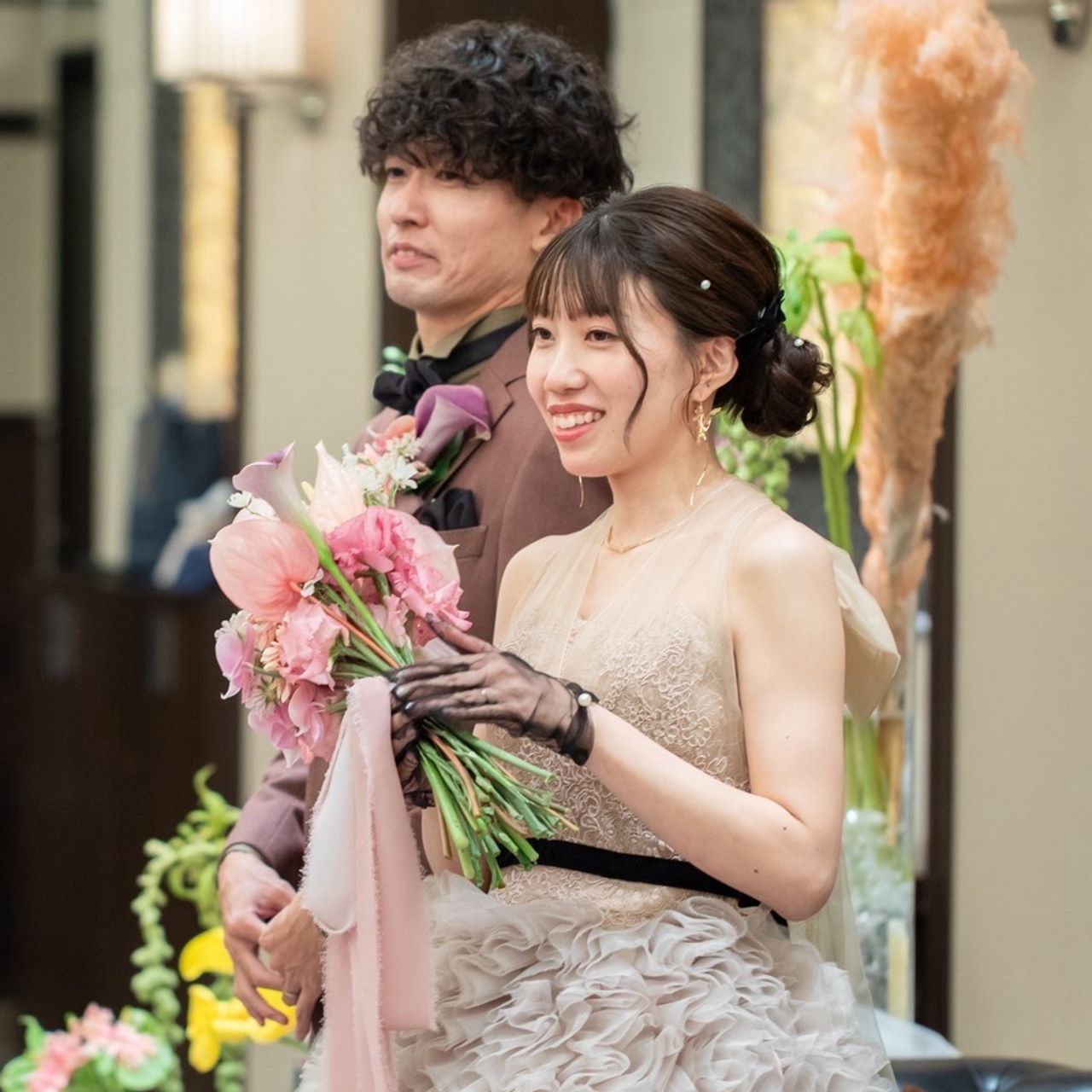 挙式では、最初はしっとりとした空気感でしたが、誓いの言葉の場面で少し笑いが生まれて、温かい雰囲気で終わりました。自分たちらしく、楽しい挙式を執り行うことができたと思います。