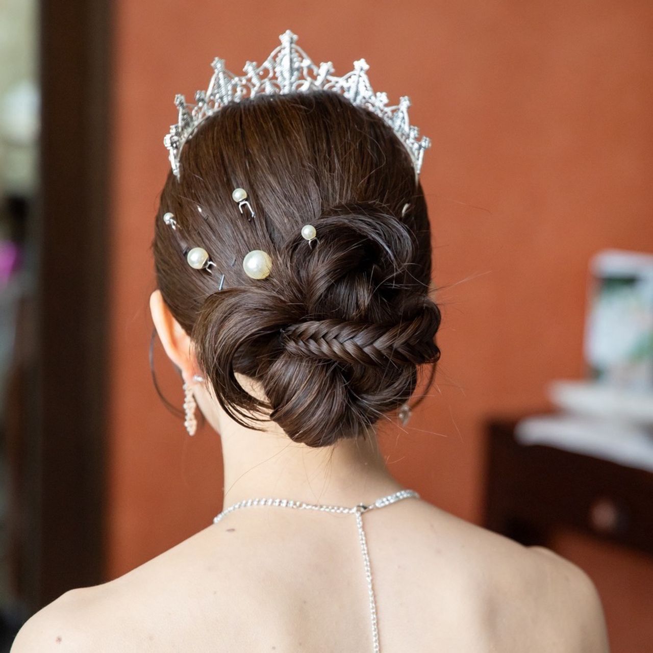 ビジューや、ベロアリボンのヘッドアクセサリーを使用しました。
