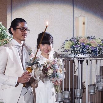 また夫婦ともにデザインに携わる仕事をしている事を生かしペーパアイテムを始め小物やウェディングドレスなども手作りしました♪