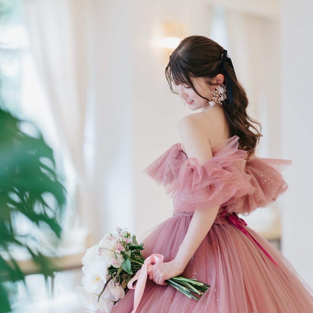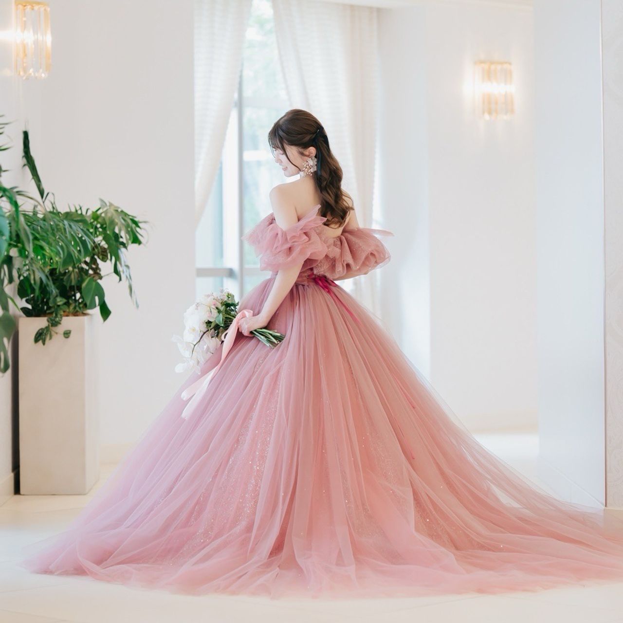 TAKAMI BRIDAL(タカミブライダル)のカラードレスです。「ピンクにはしない」と思っていたものの、色々なドレスを試着する中でしっくりときた、ピンクのドレスを選びました。