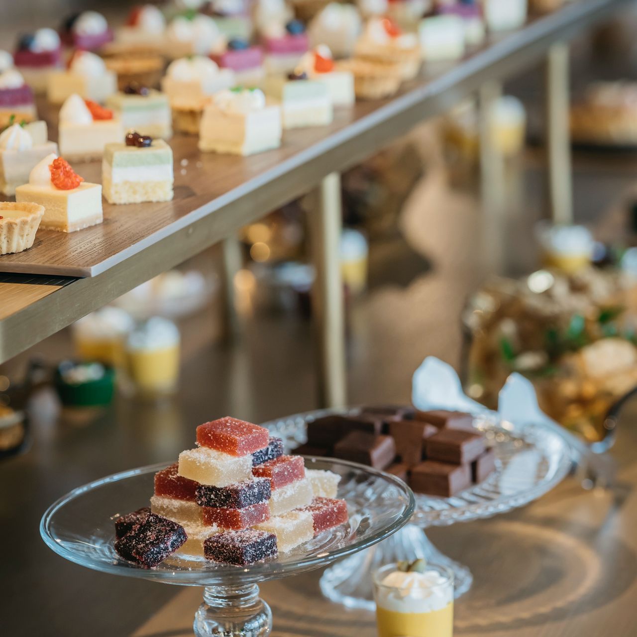 お料理はランクアップしてデザートビュッフェを取り入れました!遠方から来てくれたゲストやお誕生日のゲストには、デザートプレートにメッセージを添えていただき、喜んでもらえたのが嬉しかったです。