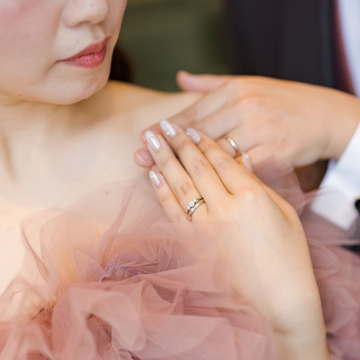 そして、胸元のアシンメトリーや背中のパールがお洒落で、キンプトン新宿東京のチャペルにも合いそうだと思ったのが決め手です。