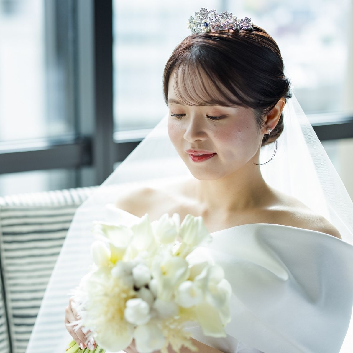 挙式は人前式で正面を向いている時間が長いことからティアラを着用しました。