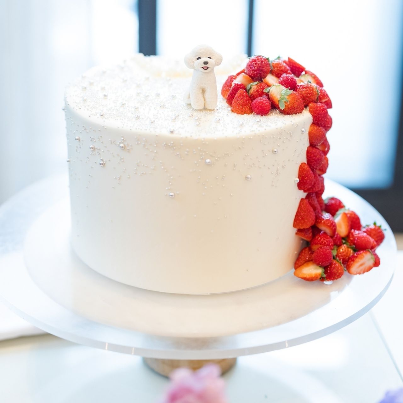 一段のケーキに愛犬のケーキトッパーを持ち込み使用してもらいました。