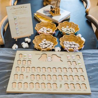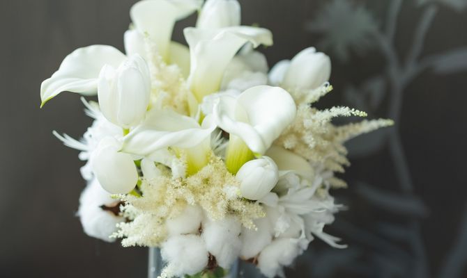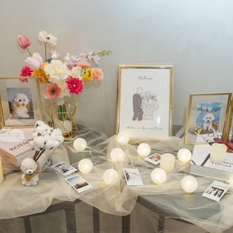 愛犬が白くてふわふわとしているので「Cotton」をモチーフとしてペーパーアイテムの素材や装花のアクセントにしています。