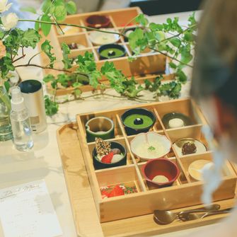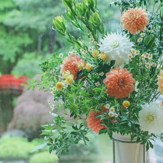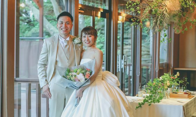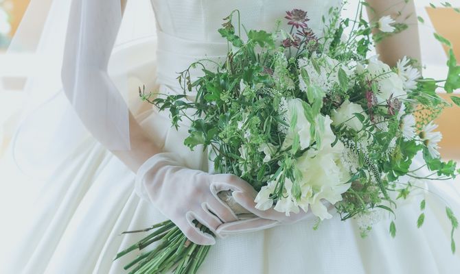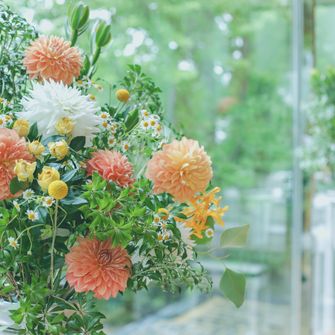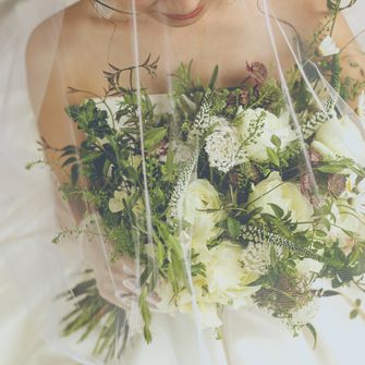 また、自然やお花がもともと好きだったので緑が多めで好みなお花をお伝えし、スタイリングしていただきました。