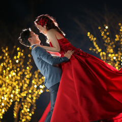 ララシャンス迎賓館のドレスショップで借りた赤のカラードレスです。