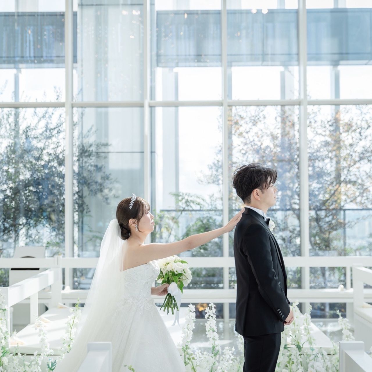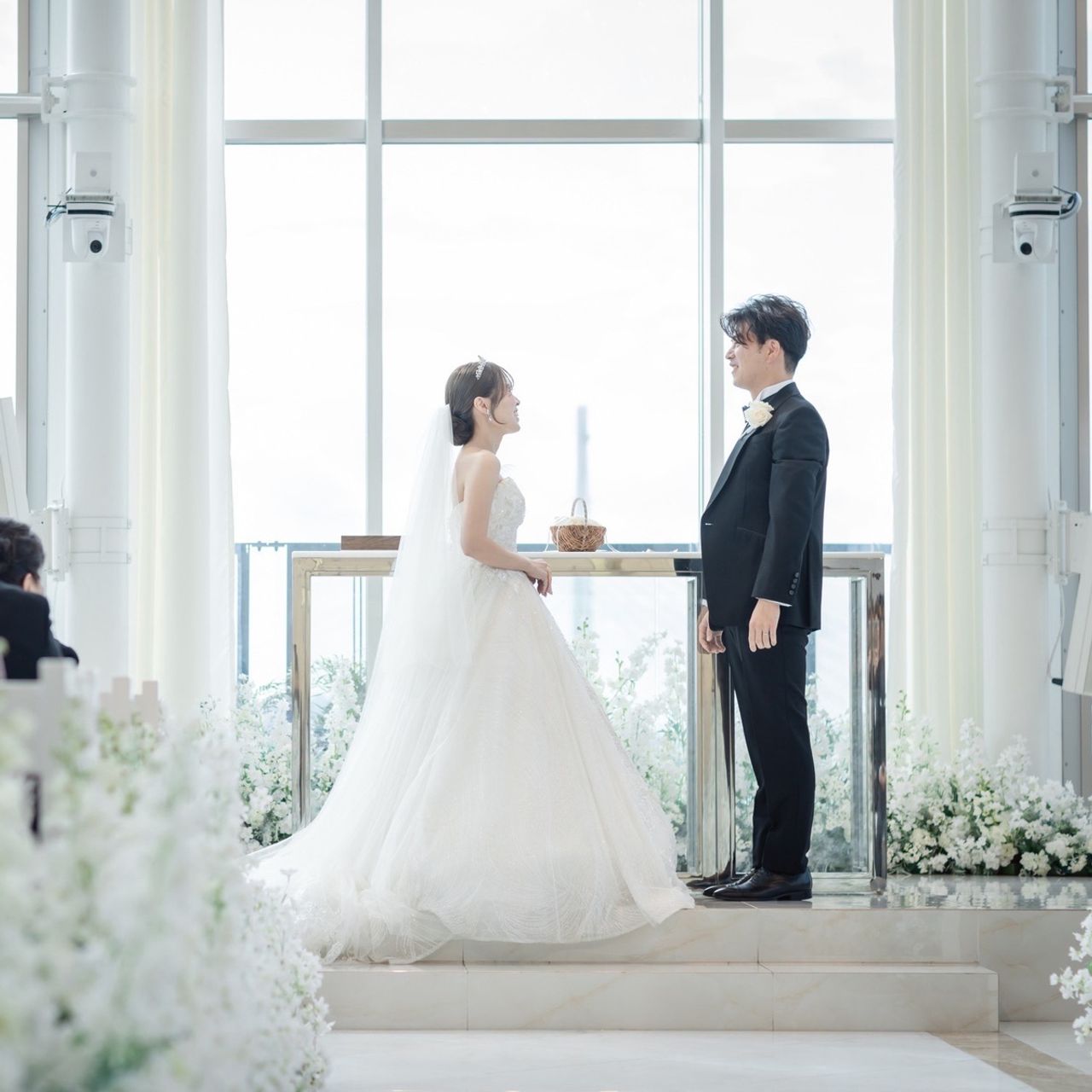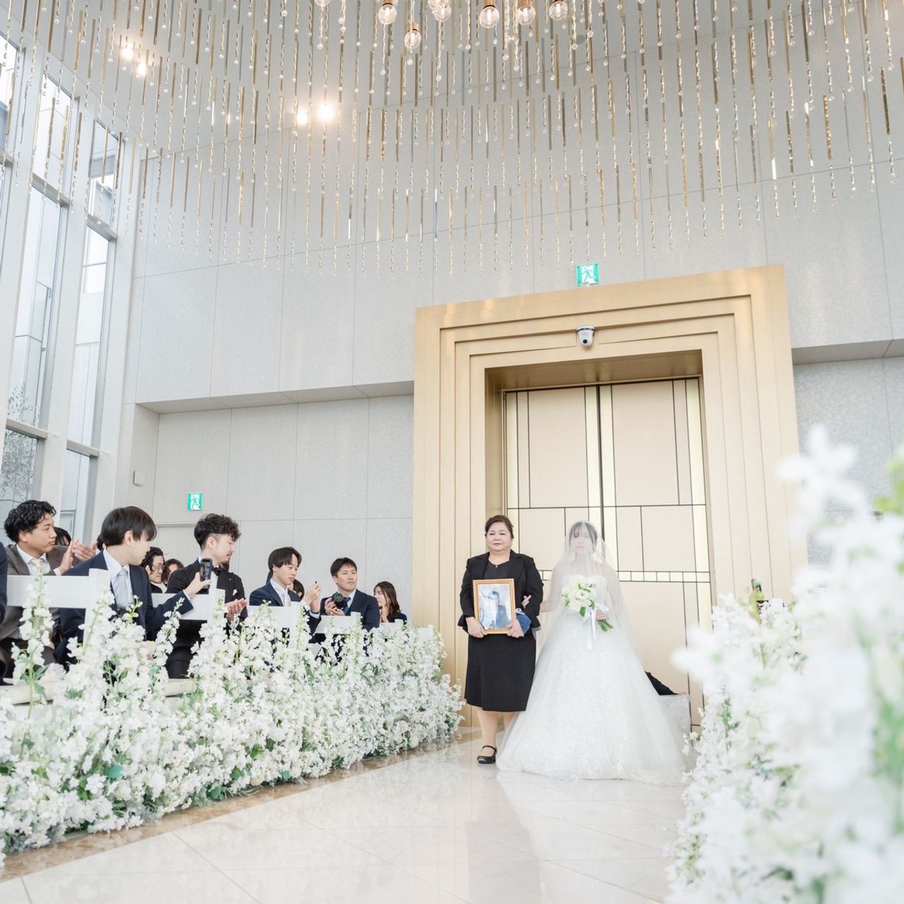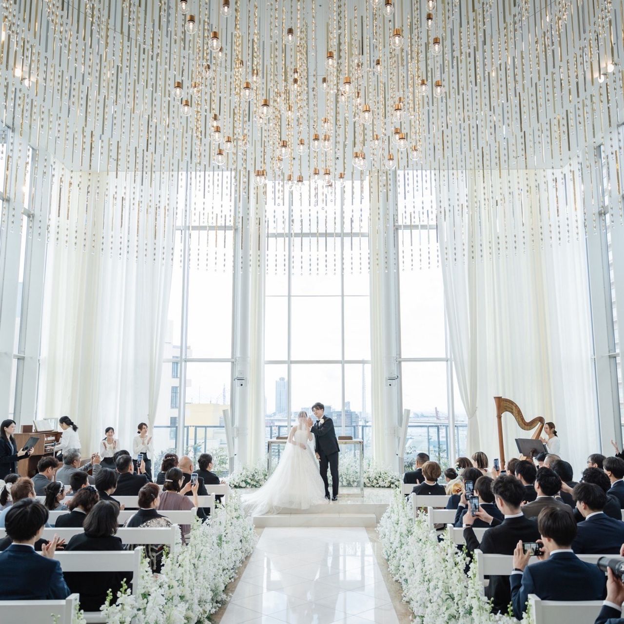 1122本のシャンデリアが飾られた白い空間で、天井が高く神聖で上品な雰囲気がとてもよかったです!入り口付近で流してもらえる「フェザーシャワー」は映えるポイントの一つなので、素敵な写真が残せました♡