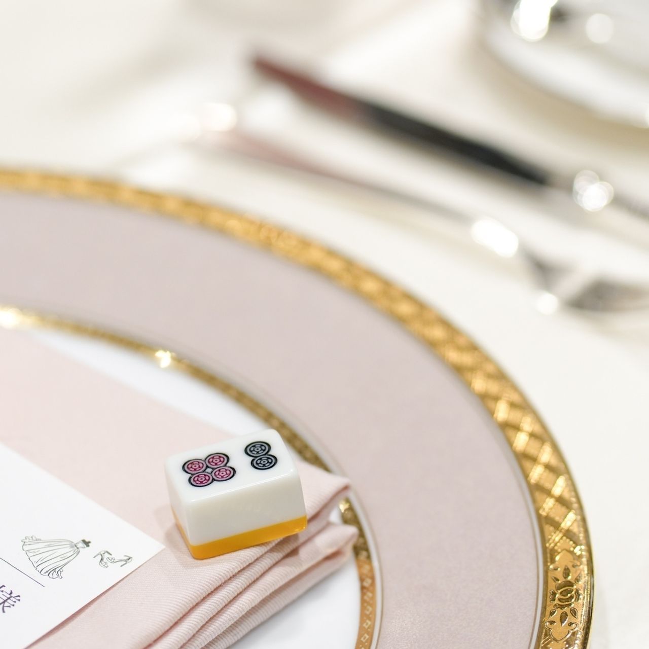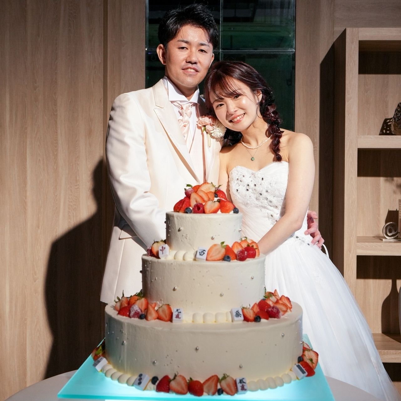 私たちが出会うきっかけとなった麻雀を結婚式に取り入れたくて、ショープレートの上に麻雀牌を置いたり、ケーキに麻雀牌を飾ってもらったりしました。また、みんなに楽しんでもらえる企画を考え、堅苦しくなくゲストに楽しんでいただける結婚式をイメージしました。