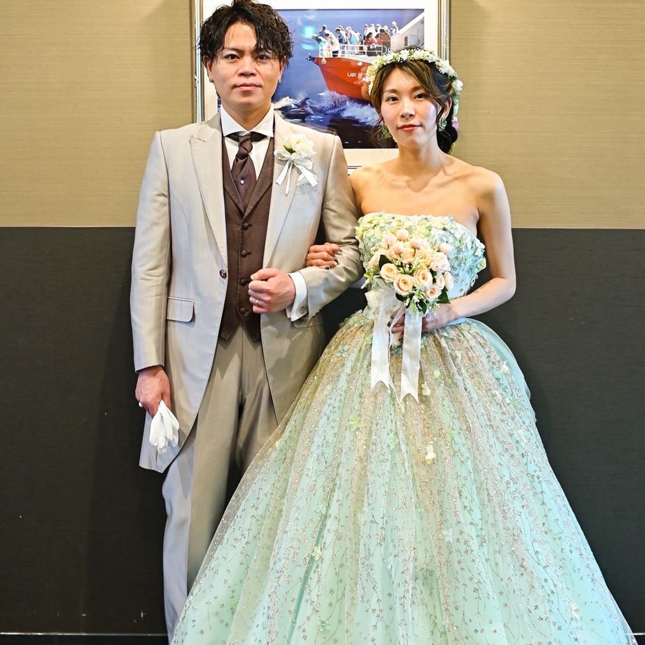 推しのカラーがグリーンなこともあり、こちらのカラードレスを選びました。お花やキラキラが施されているところもお気に入りです。