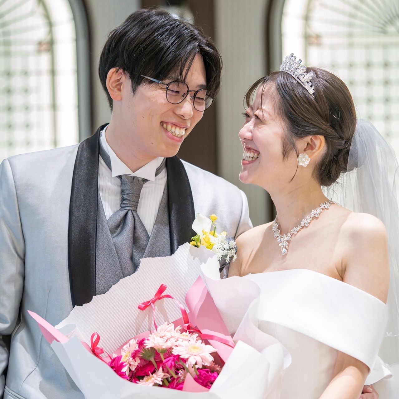 ファーストミートで、夫からサプライズで花束をもらったことです。装花のコーディネーターさんに相談し、贈りたい花言葉の花を探してもらったり、似合うデザインを考えてもらったりしたそうで、サプライズする側のつもりだった私が感動して涙が出ました。