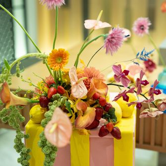 披露宴会場は「とびきりガーリーでメルヘンな雰囲気」、ウェルカムスペースは「カラフルポップ」をコンセプトにしました。