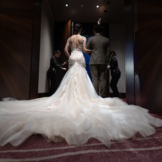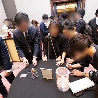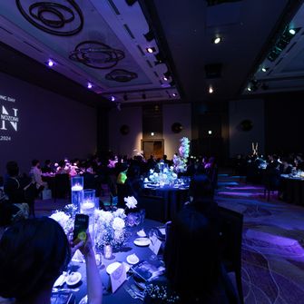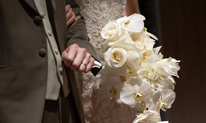 ゲストの皆様の記憶に残る、所々でクスッと笑える、楽しんでいただけるお式を目指しました。自分たちの好きを詰め込んで、ラグジュアリーで洗練された雰囲気に仕上がって大満足しています。東京會舘にした決め手はチャペルの開放感と会場のクラシカルな雰囲気。遠方からのゲストも多いため、東京駅から徒歩でも来られるアクセスの良さもポイントでした。