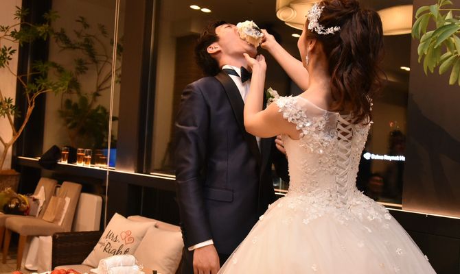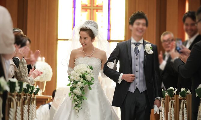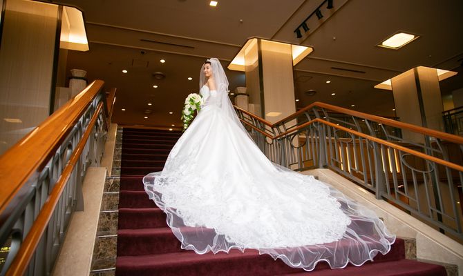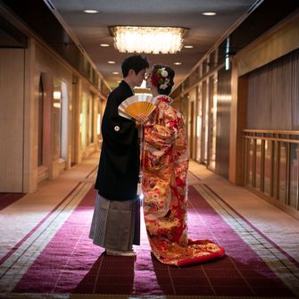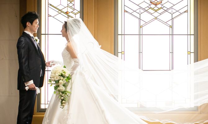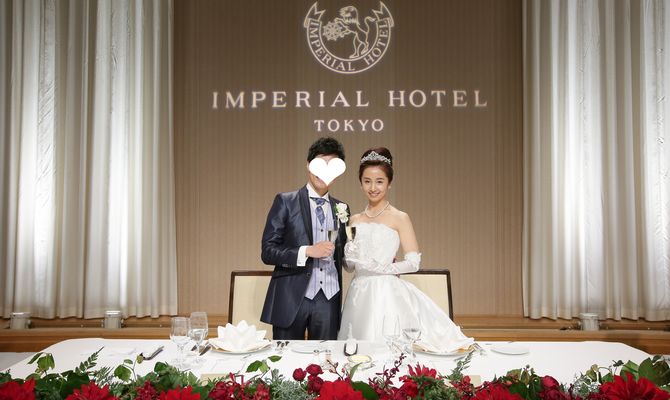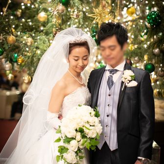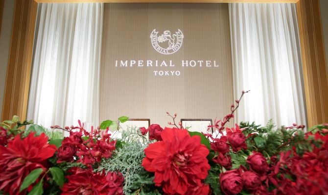 格調高く歴史ある帝国ホテル東京での結婚式。特にクリスマスシーズンは、大きなツリーと赤い薔薇のエントランスフラワーで一層華やかになります。