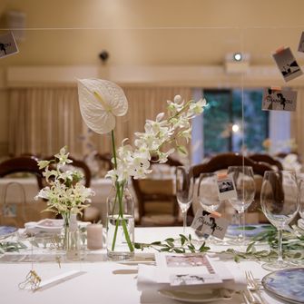 テーマは、ゲストにリラックスして楽しんでいただけるアットホームなウェディング。日頃の感謝の気持ちを伝えたい、笑顔が溢れる時間にしたいという想いで披露宴を行いました。