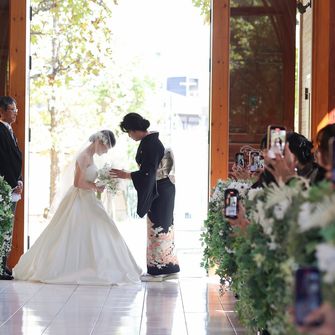 テーマは、今まで携わってくださった方々に感謝の気持ちを伝えることです!自然いっぱいのチャペルとお姫様気分を味わえるララシャンス 博多の森の披露宴会場に惹かれました。
