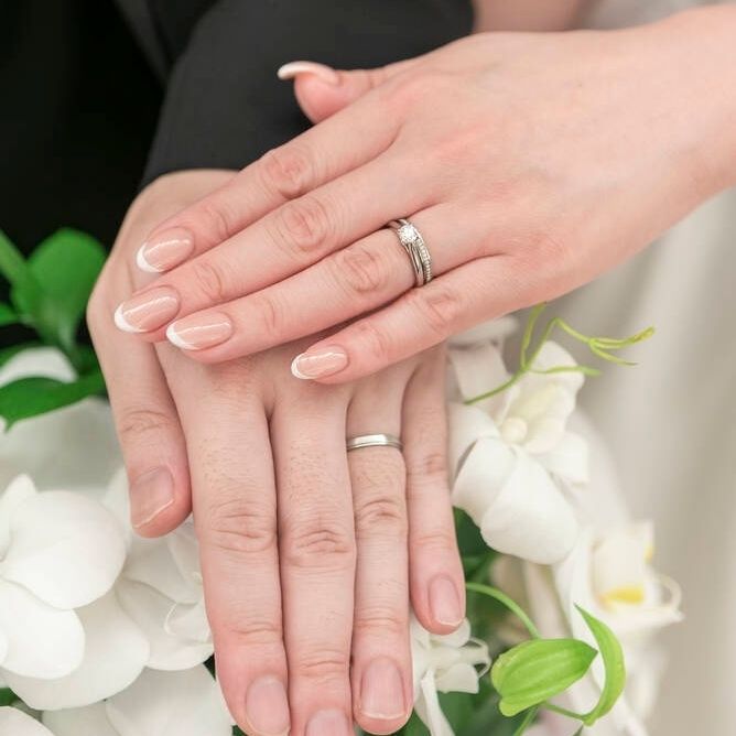 担当のネイリストさんから「ウェディングドレスにはノーマルフレンチ」とおすすめしてもらい、ノーマルフレンチにしました。