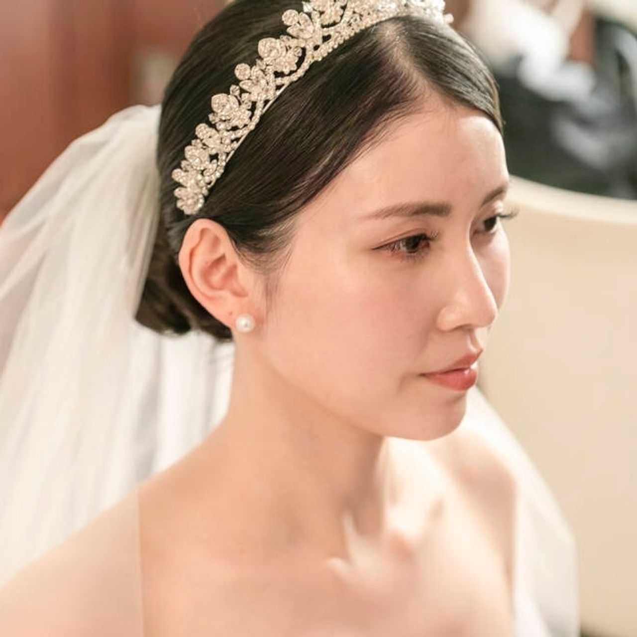 挙式はIvory&Co.のAlexandraを着用しています。顔とのバランスが取れたティアラにしました。