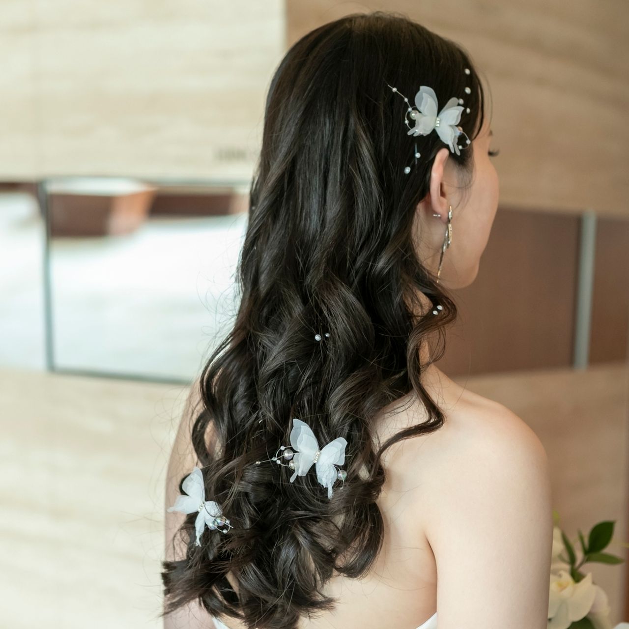 披露宴ではSHEINの蝶々のクリップ、パールを合わせています。