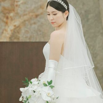 ドレスはSIBILLAの1着のみでしたが、挙式と披露宴で髪型やヘアアクセサリーを変えて、雰囲気の違いを楽しみました。