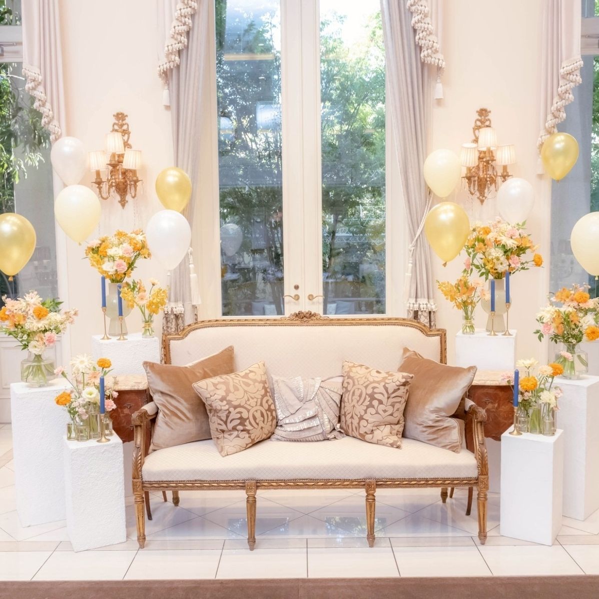 また、挙式会場を出たところにあるバイブリーコートでは、とても珍しい手回しオルガンの音色と共にバルーンリリースやフラワーシャワーを行うことができます。