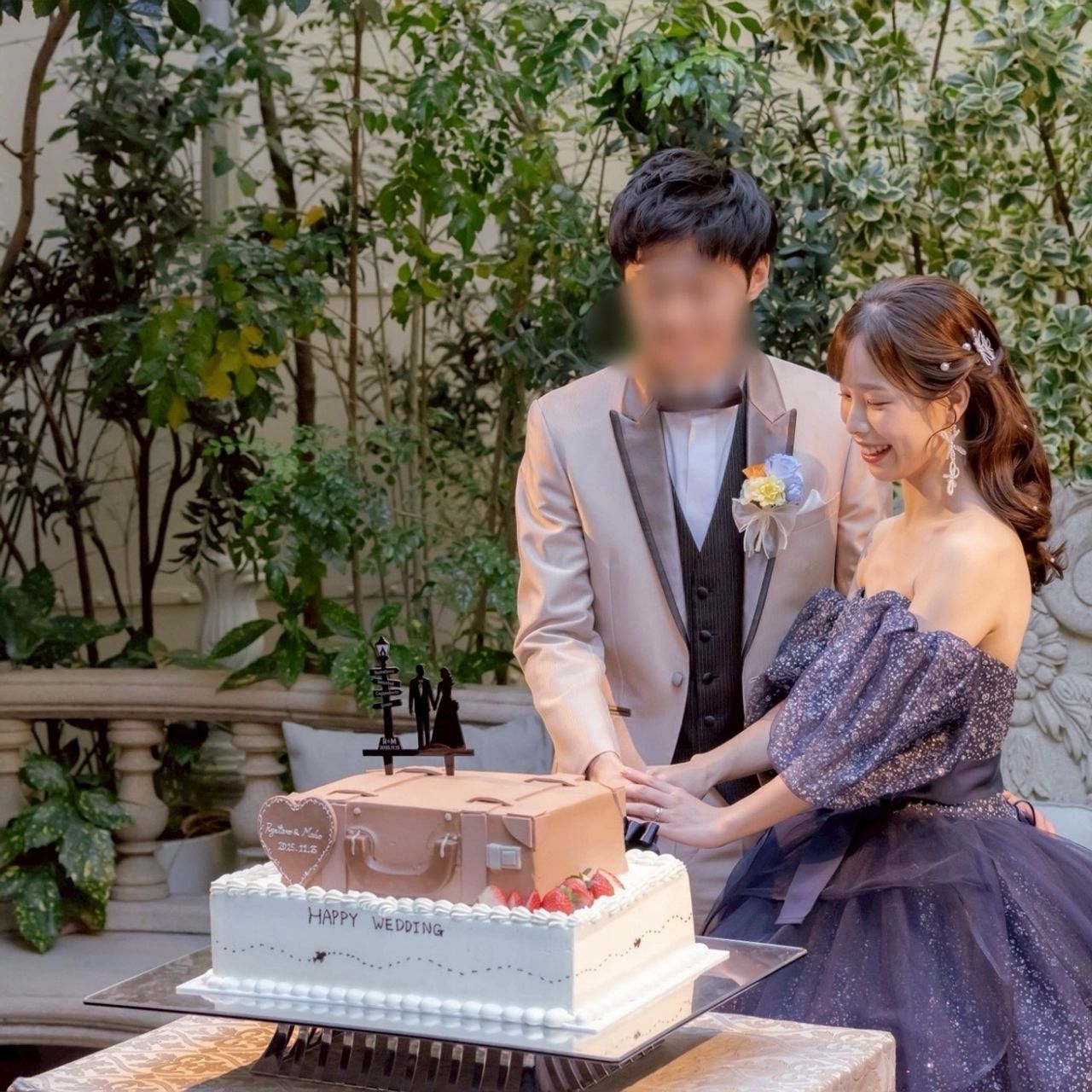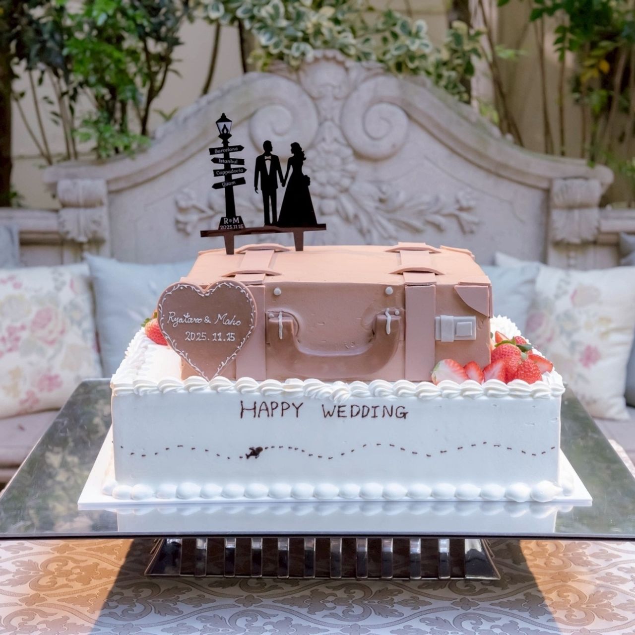 テーマである旅を連想できるようなトランクケースがモチーフのケーキです。