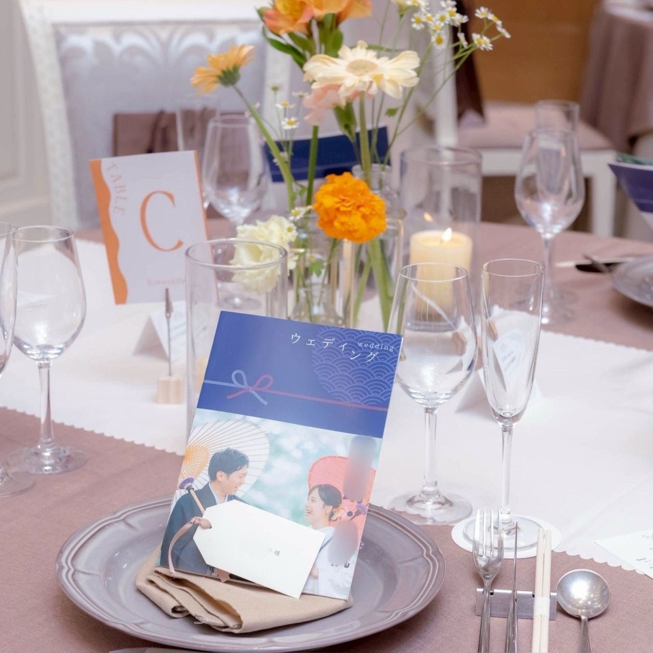 また、差し色でドレスと同じネイビーのキャンドルを設置しました。