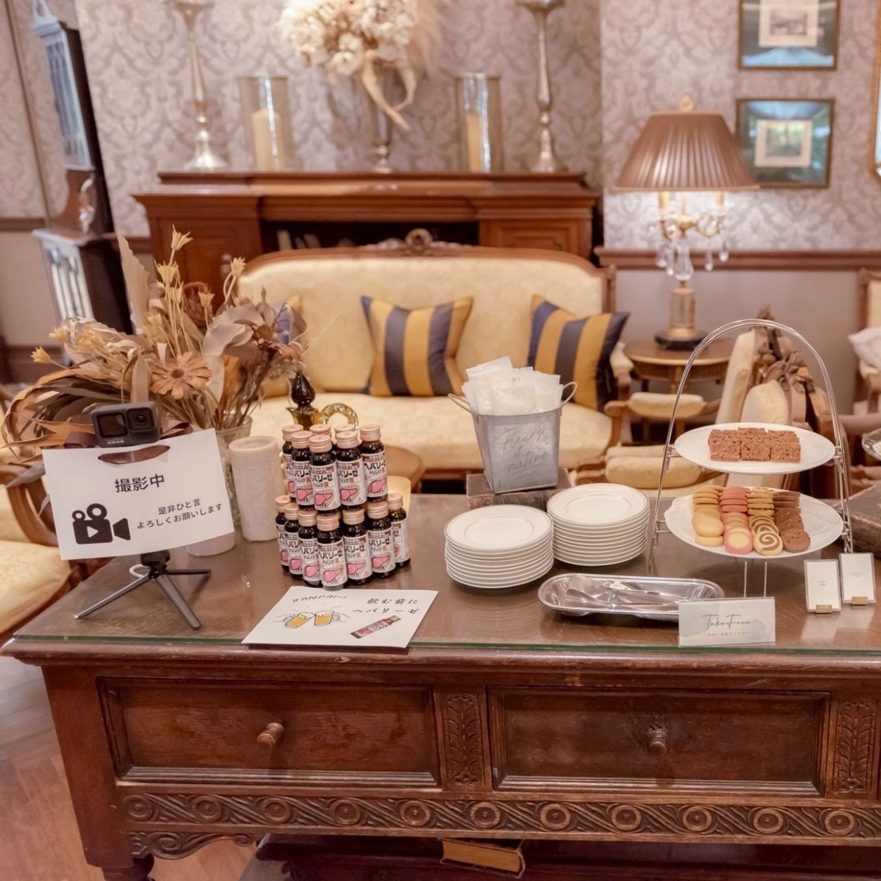 飲むのが好きなゲスト向けにしじみ汁、そうでないゲストや子供ゲスト向けに紅茶とチョコのセットを用意しました。