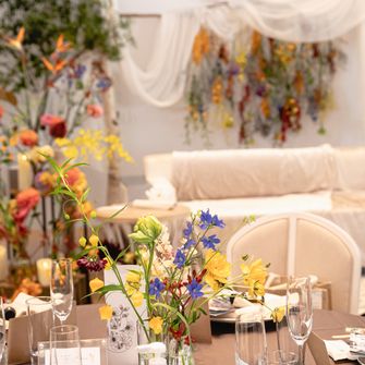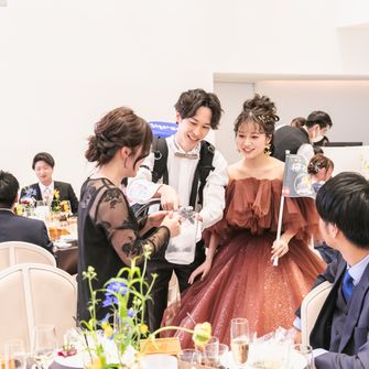会場の決め手は、素敵なチャペルと挙式会場、披露宴会場ともにバリアフリーであることです。また、自分たちのイメージ通りの実現ができることもポイントになりました。チャペルの洗練された雰囲気と合う様に挙式の小物はスタイリッシュに。披露宴は白く明るい会場でしたので装花やペーパーアイテムはカラフルで華やかにしました!
