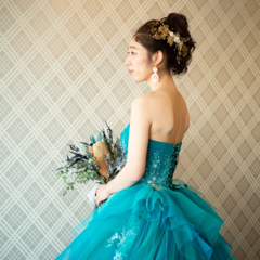 カラードレスは、ヘッドアクセに、色味を合わせたgoldの大きめピアスをつけました。