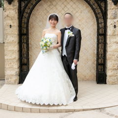 教会の大理石のバージンロードに映えるような、ロングトレーンのドレスを探していました。