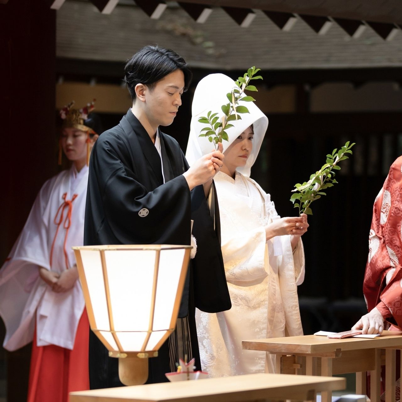 境内自体も大きくなく、挙式中は参拝客を止めてくださるので、参進の際なども家族や友人に囲まれたアットホームな空間で、落ち着いていて温かな時間が流れます。