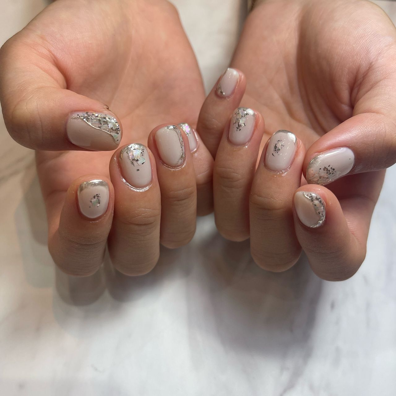 シルバーと白で華やかにしたい、パターンをいくつか設けたいというイメージのオーダーを理想通りに施術していただきました!
