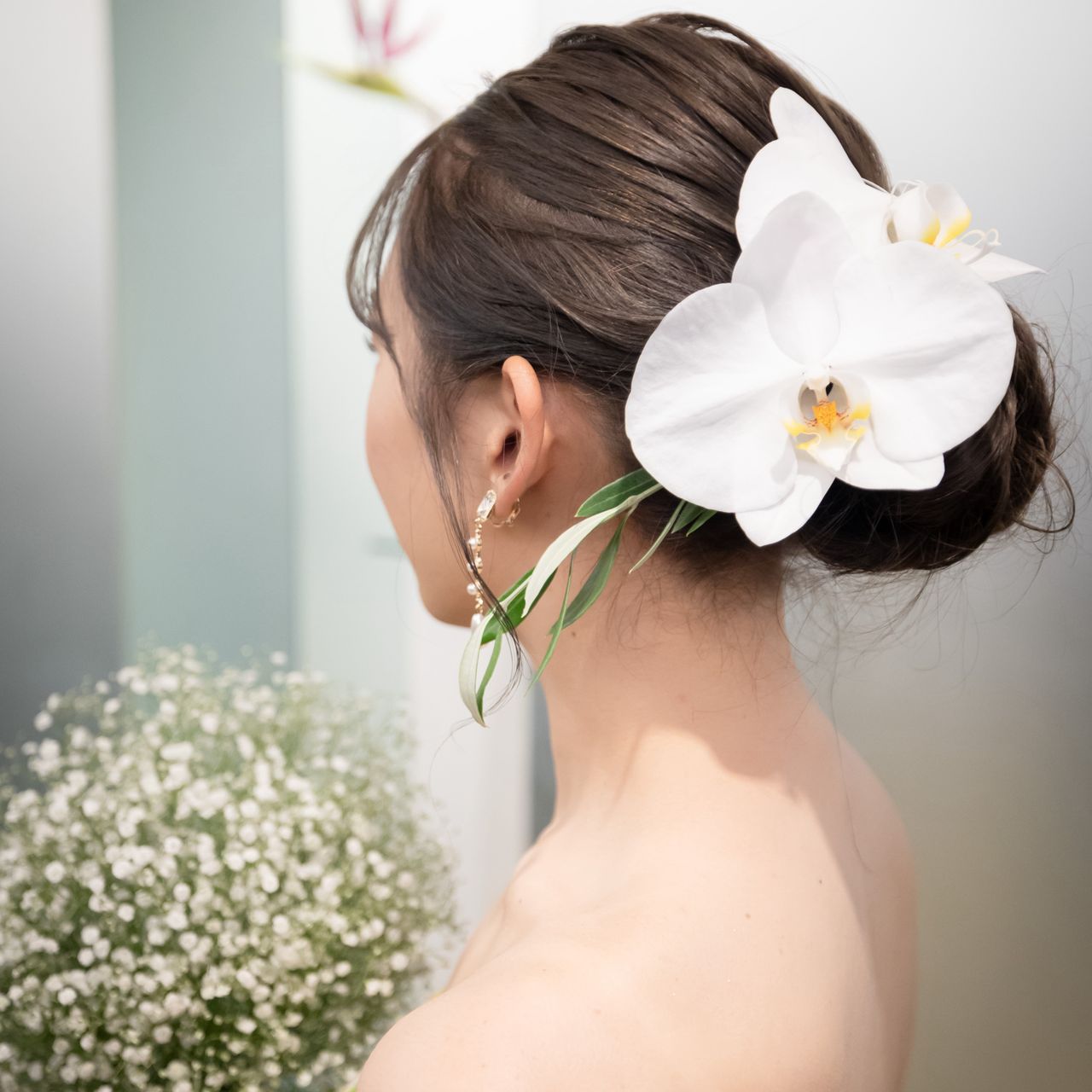 胡蝶蘭を生花でつけたいというわがままを聞いていただけました…!