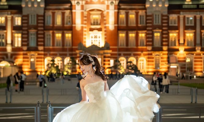 パレスホテル東京(PALACE HOTEL TOKYO)の決め手はプロポーズで宿泊した思い出のホテル、そして何より丸の内は、当時新幹線で上京した2人にとって頑張ろうと鼓舞される場所、初めて出会った場所、今でも大好きで頻繁に来る場所、そしてプロポーズしていただいた場所、思い出が詰まった場所だからです。前撮りももちろんこのエリアでした。