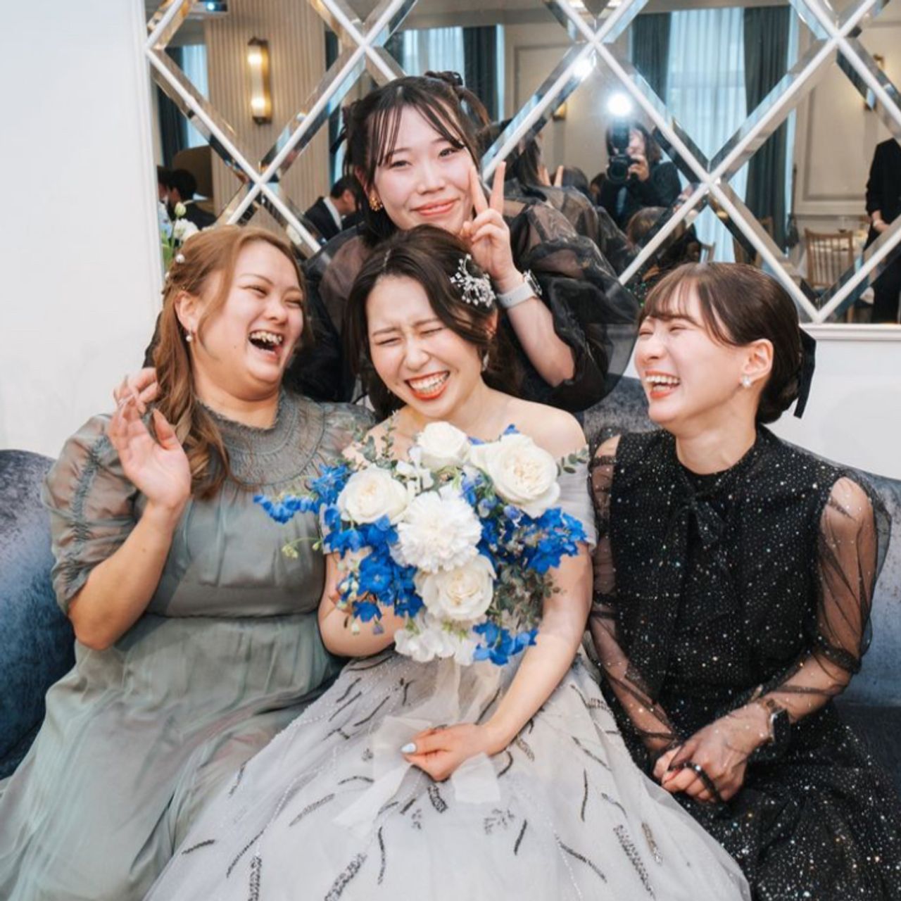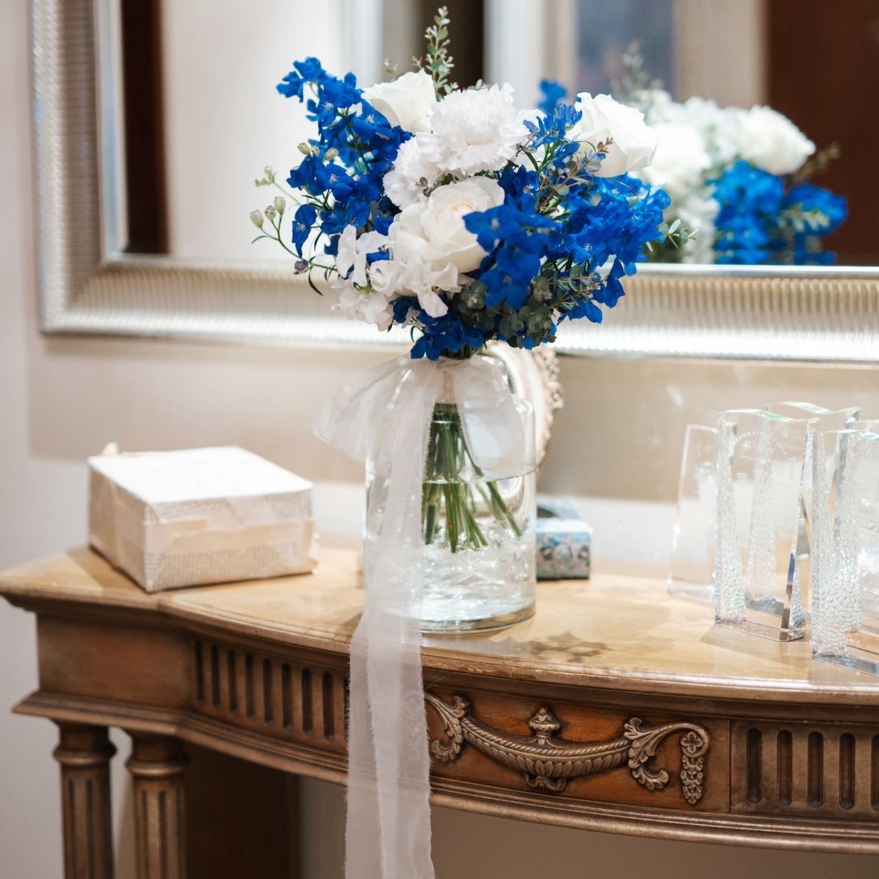 青と白のお花をメインに、あまり派手すぎず綺麗系でまとめてもらいました。