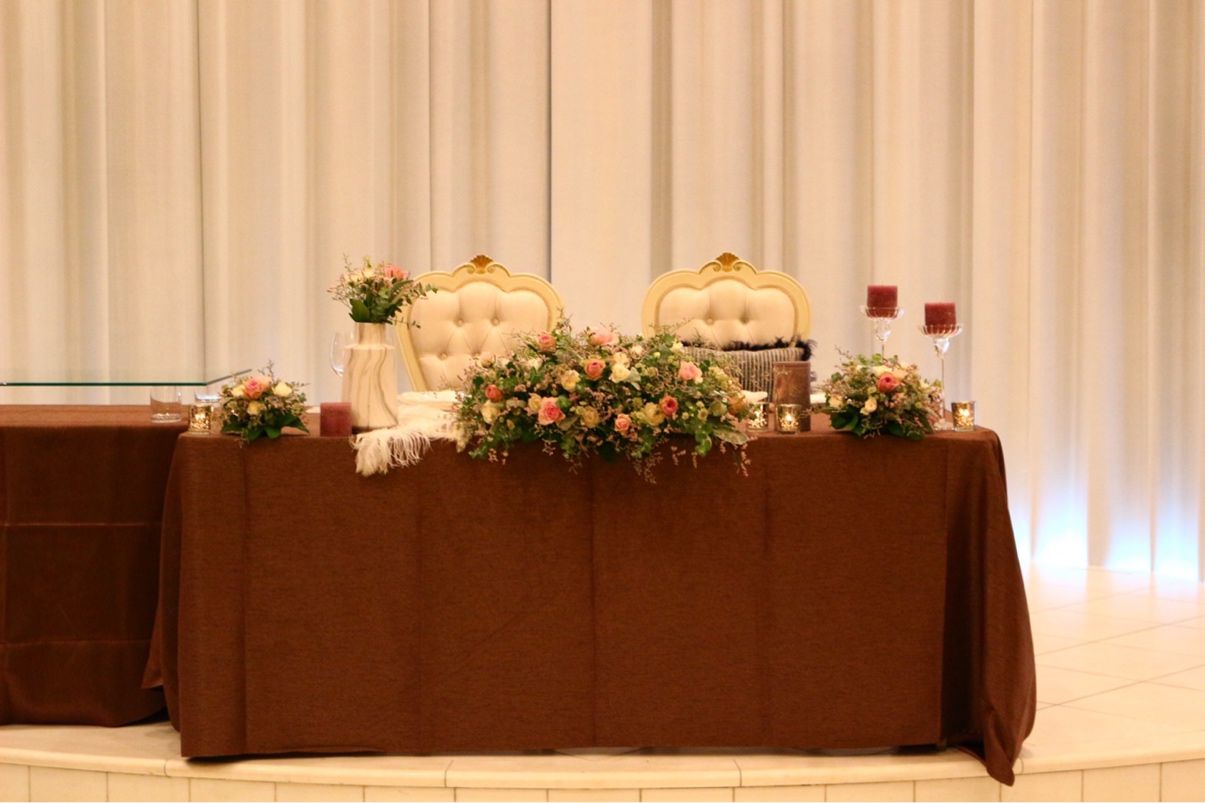 ピンクやブラウンを使って大人かわいいを目指しました。装花も落ち着いた色味やデザインを考えました。
