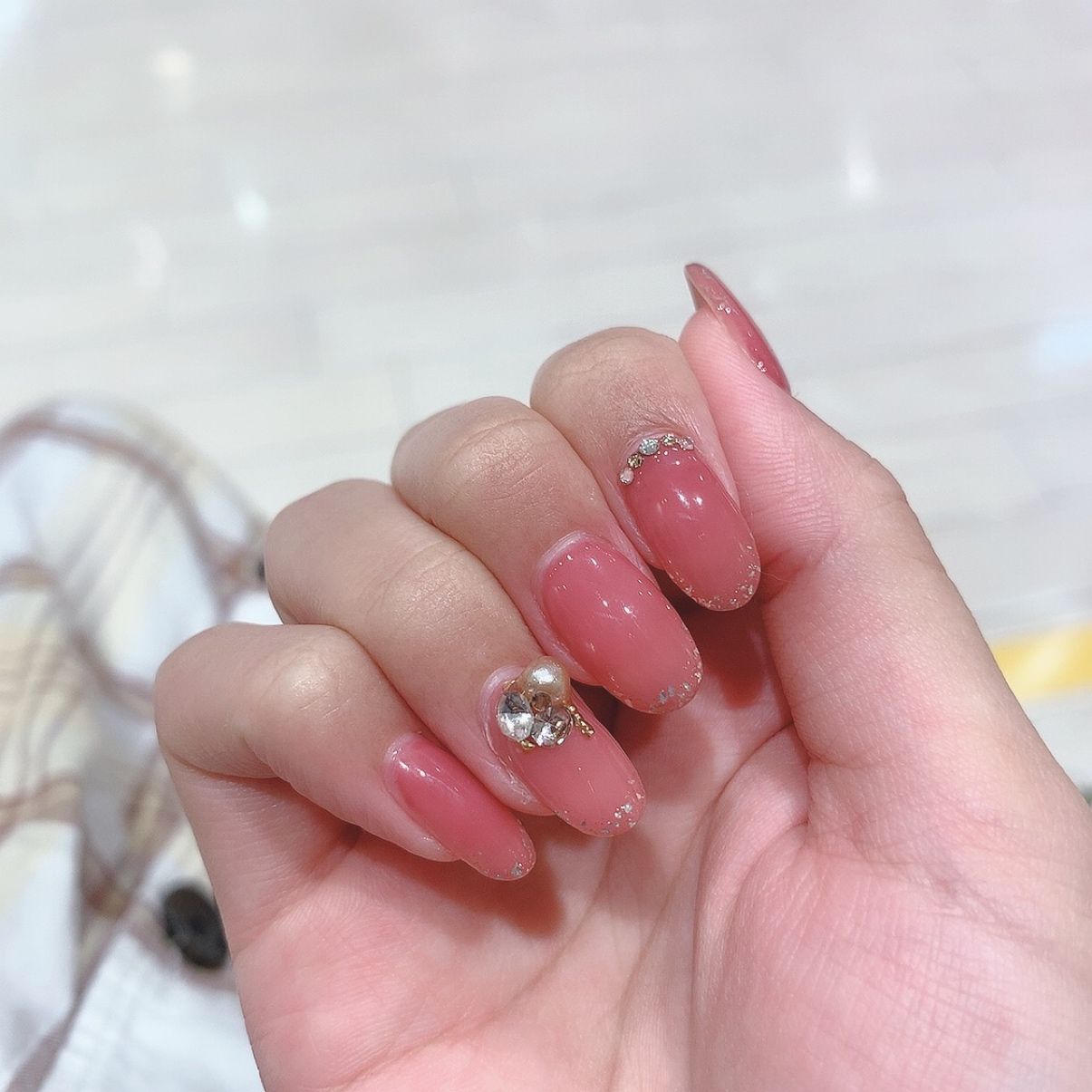 カラードレスの色味に合わせたネイルにしました。ビジューを多めに使ってキラキラに。