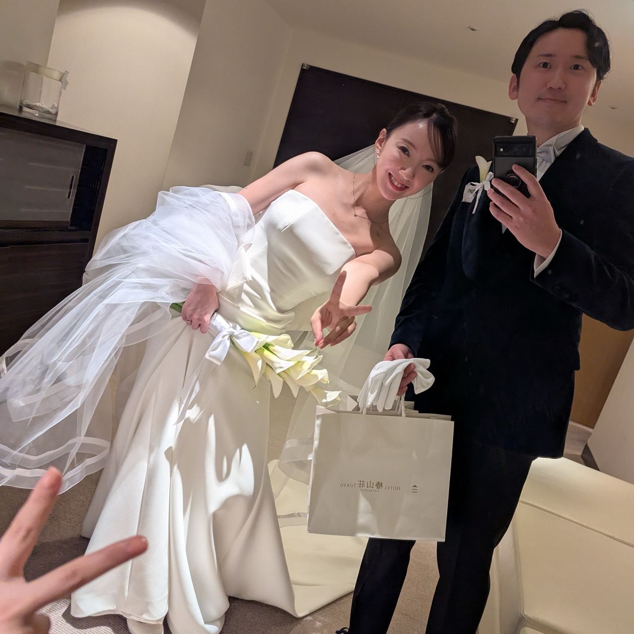 ソフトマーメイドでスッキリみせつつバックデザインが大きくインパクトがあるドレスです。挙式では背後からゲストに見られるためこちらのドレスに即決しました✅
